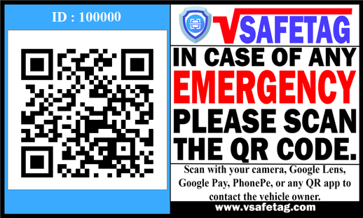 VSafeTag is a smart, QR-based safety and convenience solution for modern vehicle owners. Each VSafeTag is a durable, weatherproof QR sticker designed to be affixed to your vehicle's windshield or another visible area.